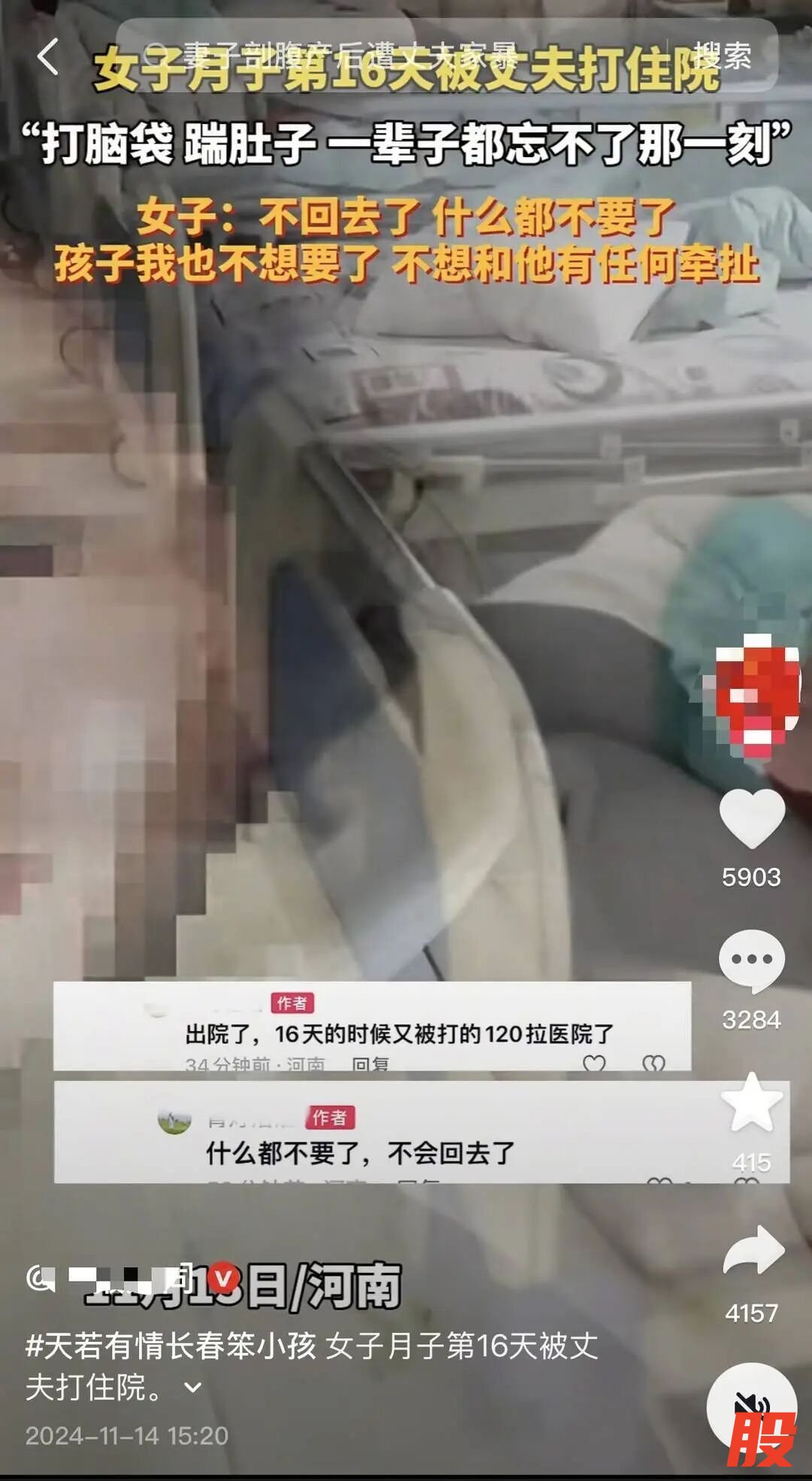 不实信息截图。数十条“产妇被家暴”信息集中发布大量网友关注并留言记者注意到,上述不实信息最早发布于12月13日,随后3天数十个网络账号发布类似信息,其中不乏粉丝数上万的自媒体账号。该信息称,“乐山一女子剖宫产后第16天,想让老公哄会儿娃,老公不干,两人吵起来,老公一脚踹在孕妇肚子上,刀口当场撕开,血渗了一床。”上述信息在三天里通过文字、视频等形式传播,引发大量关注。据不完全统计,信息发布地包含广西、广东、四川、北京、河南、浙江等地。大量网友留言,表达愤怒,要求乐山市相关部门介入处理。官方辟谣:旧闻新炒,嫁接造谣正持续处理中12月17日,记者从乐山市相关部门获悉,经网信、公安、妇联等部门核实,近日,乐山未发生产妇遭遇家暴事件,该信息属于谣言。参与调查的工作人员告诉记者,通过视频画面及文字对比,他们发现,该谣言是部分网络账号对《女子月子第16天被丈夫打住院》旧闻的炒作,将原本的新闻画面进行恶意剪辑拼接,在标题中加入“乐山”造谣引流。记者注意到,《女子月子第16天被丈夫打住院》消息发布于2024年11月14日,该事件发生于2024年11月13日,事发地为河南,并非乐山。